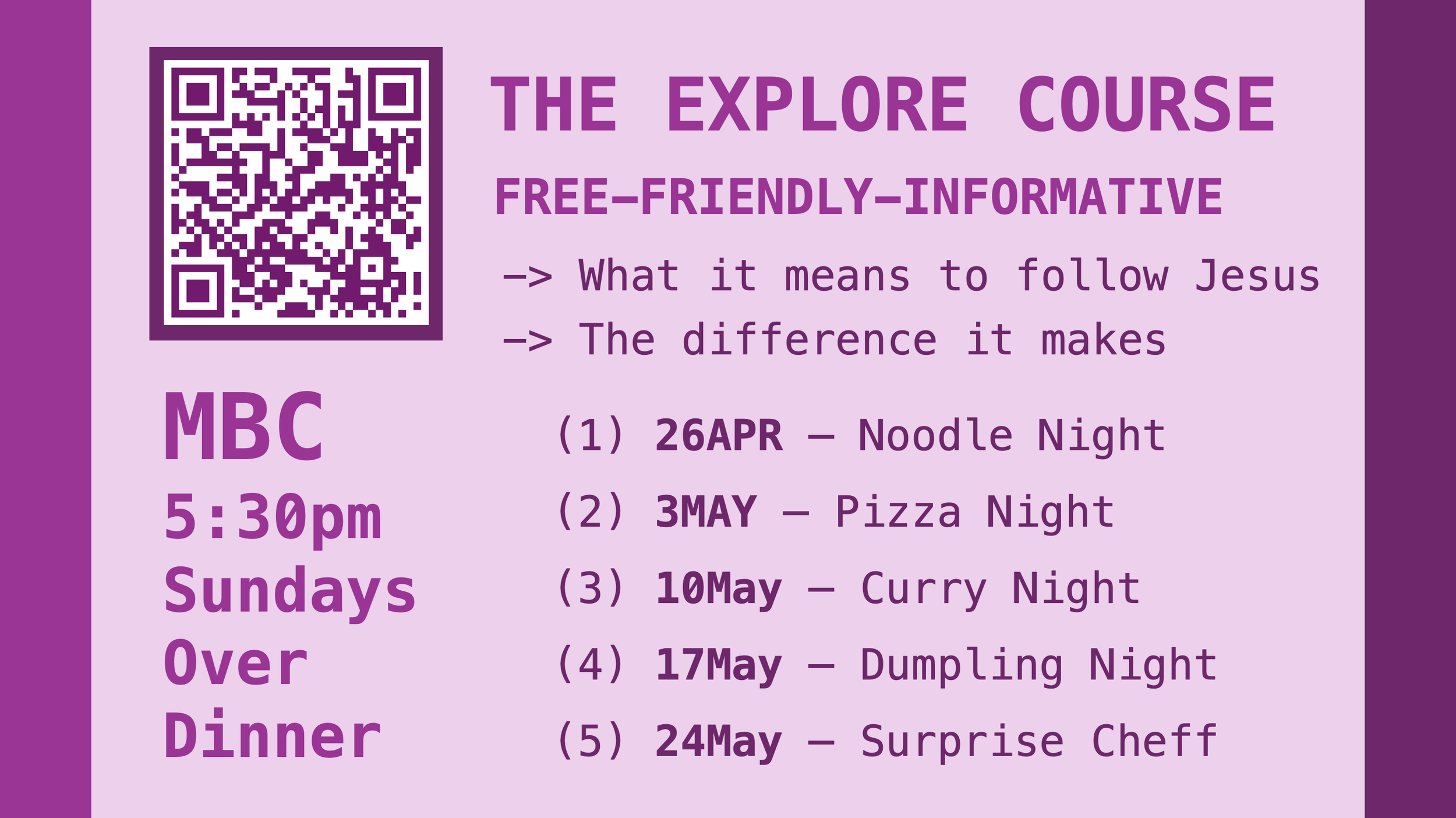 Feel free to let us know any questions you may have about the EXPLORE course at MBC…